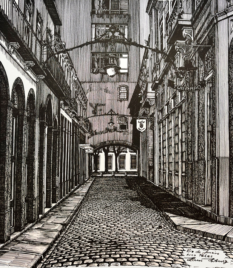 Hornig herdou o gene artístico do pai e aperfeiçoou seus traços durante viagens por países como Portugal, Itália, Espanha, França, Estados Unidos e Brasil. Com precisão, capta a elegância e as minúcias de obras arquitetônicas e paisagens naturais. Seu trabalho vai além do registro histórico e das transformações urbanas — ele revela a essência dos lugares que retrata.