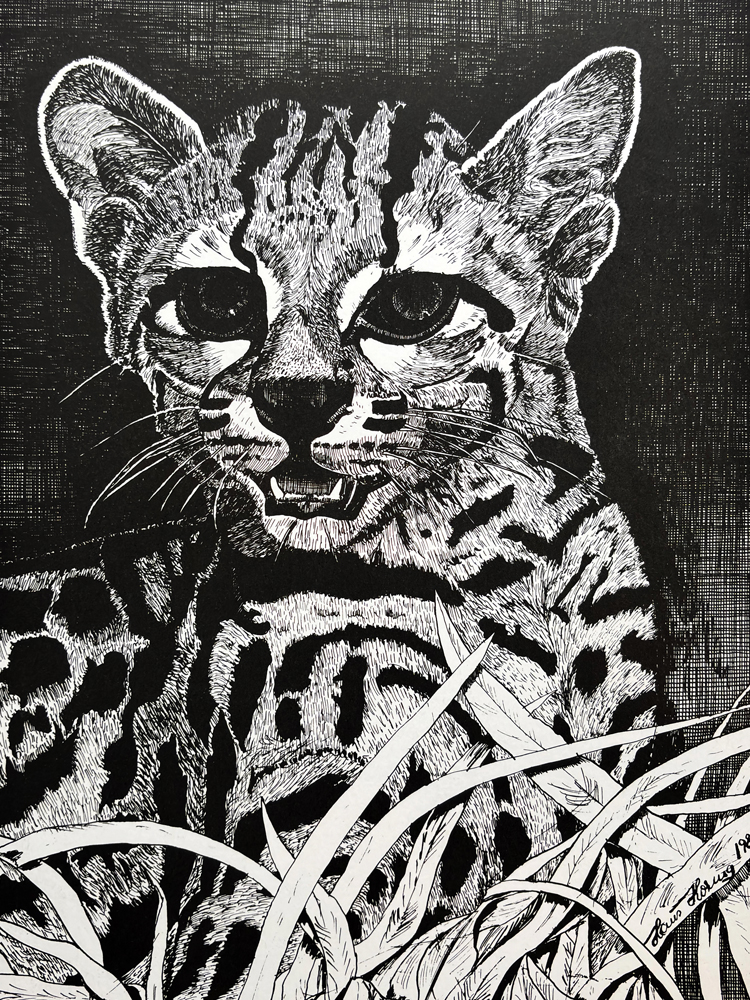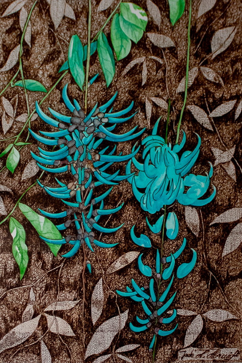 O artista se aventura na pintura a óleo e na combinação do nanquim com aquarela, que o permite exaltar as cores intensas de floradas de orquídeas e de animais que o fascinam. Ele também é um retratista experiente, que imprime personalidade em suas criações.